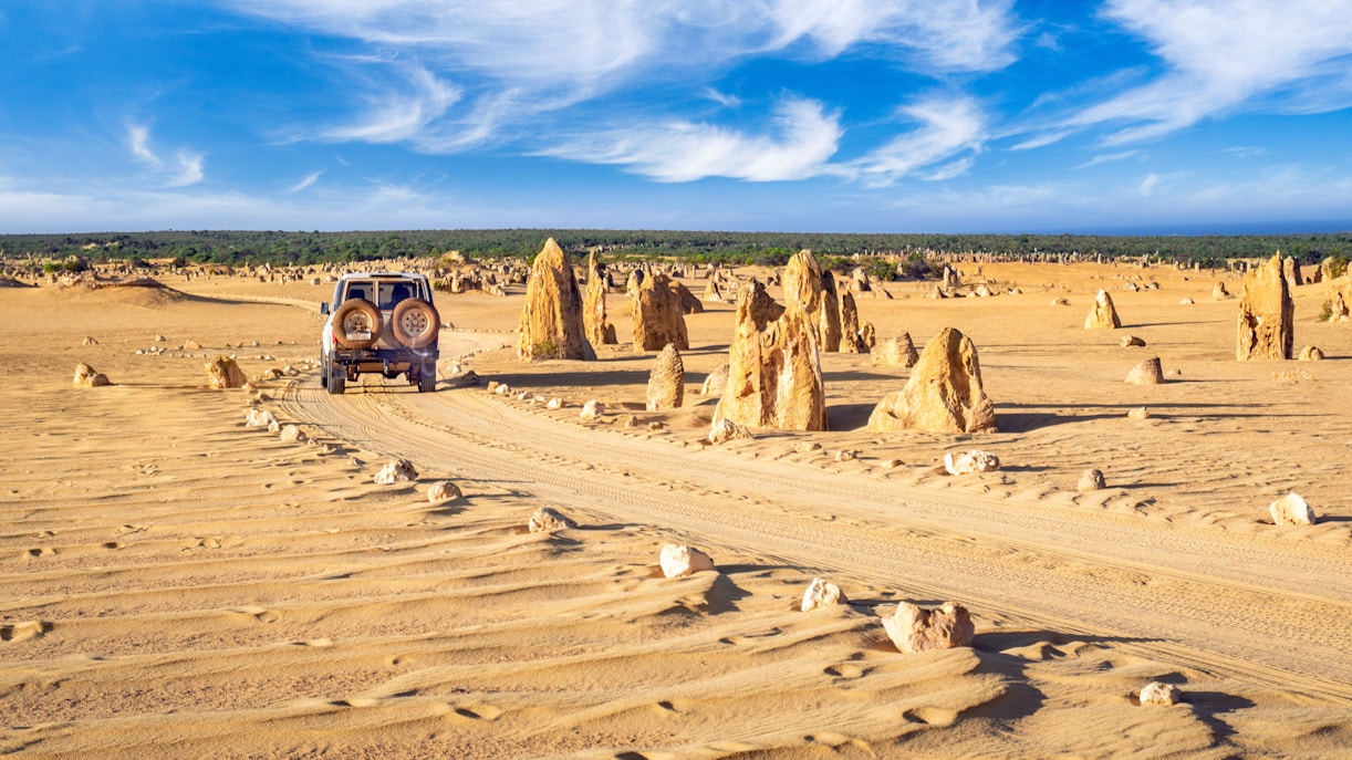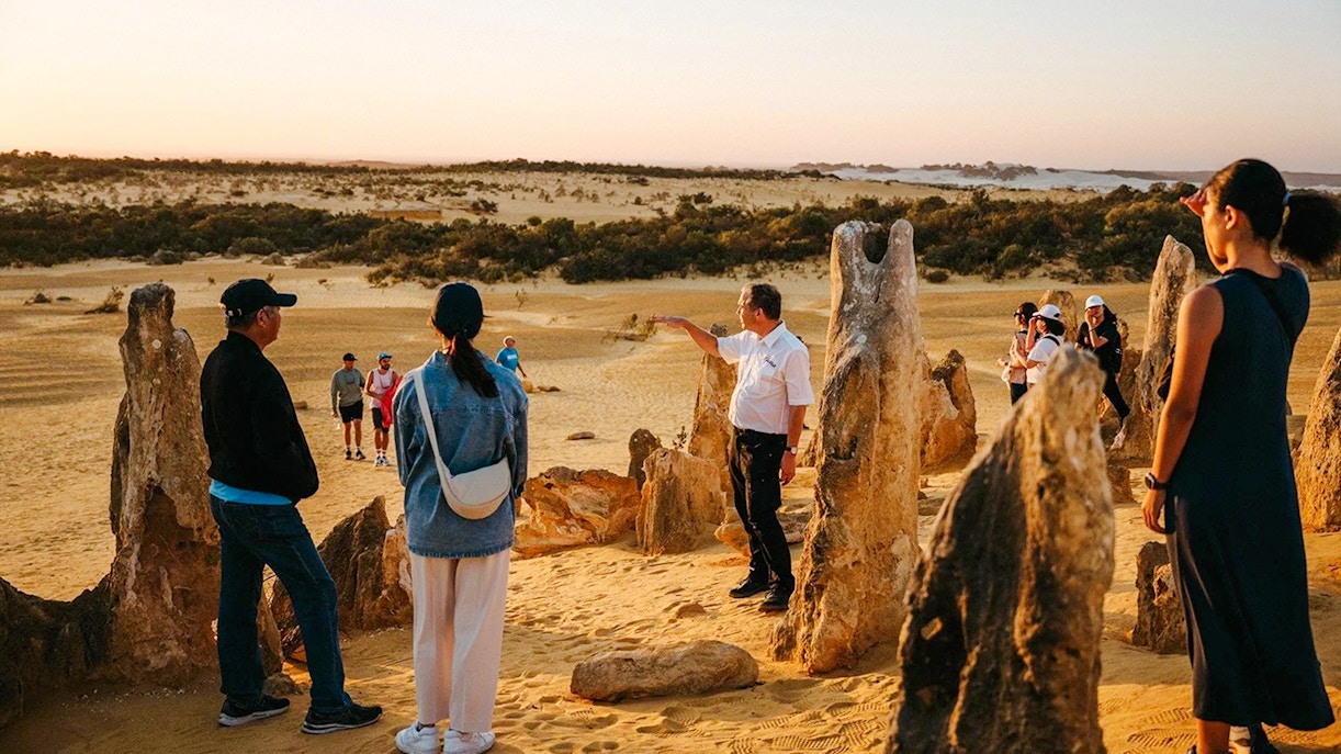 The Pinnacles Desert lies within Nambung National Park, around 2 hours north of Perth on Indian Ocean Drive. Known for its thousands of limestone pillars rising from yellow sand, it’s one of WA’s most iconic landscapes. Most tours include round-trip transfers, making it an easy day trip with options for walking trails, sunset views, or stargazing experiences.